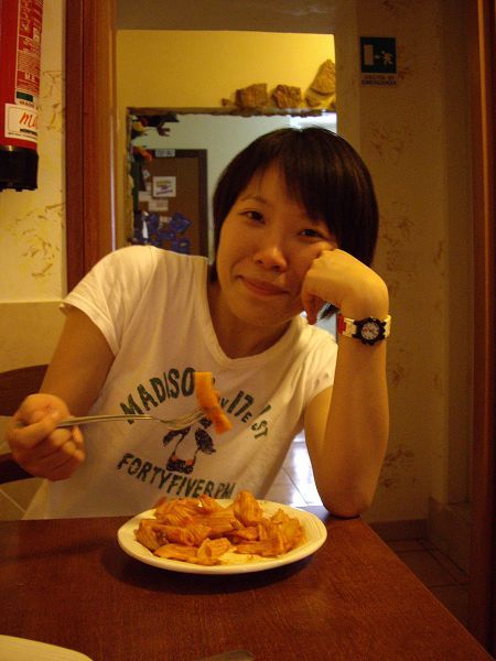 拖著沈重的步伐,看著依舊明亮的天色,我們準備回旅館吃免錢的晚餐~~