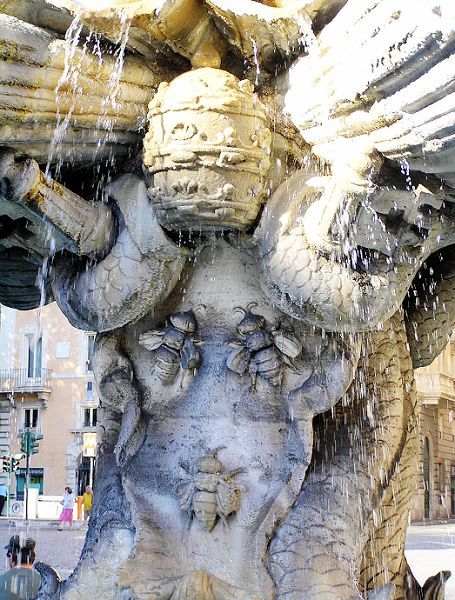 在巴貝里尼廣場附近的蜜蜂噴泉,同樣也是出自貝尼尼之手。這也是為了紀念烏爾班8世繼任教皇而建的,所以上頭也有他的家徽作為裝飾