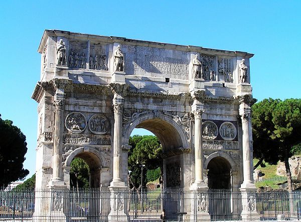這座凱旋門於西元315年興建完成,是為了慶祝君士坦丁打敗和他一起共治的馬森齊奧。拱門上大部分的裝飾、浮雕、雕像,都是從其它的紀念碑上拆下來的。