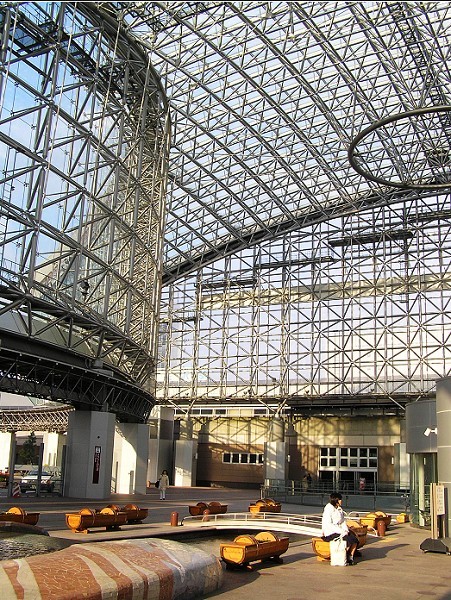 車站外頭廣場的鋼骨結構是2005年完成的!高29.5公尺,寬180公尺,鋁合金樑柱上覆蓋以採光玻璃,整個廣場更顯得雄偉氣派,沒有壓迫感,呈現出明亮的開放空間。