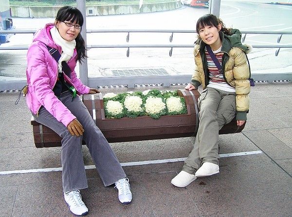 東口廣場內設置了許多這樣的造型椅,說真的!中間栽植的植物小豆乾不知道是什麼?只知道日本人喜歡種它當作觀賞植物,常在公園、路邊、或是住家看到它們。不過小豆乾覺得它們長得很像萵苣或是花椰菜呢!