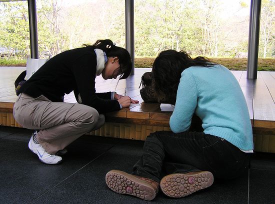 瞧這兩個人在做啥?面壁思過?罰抄經書?其實他們被小豆乾逼著寫明信片~~
