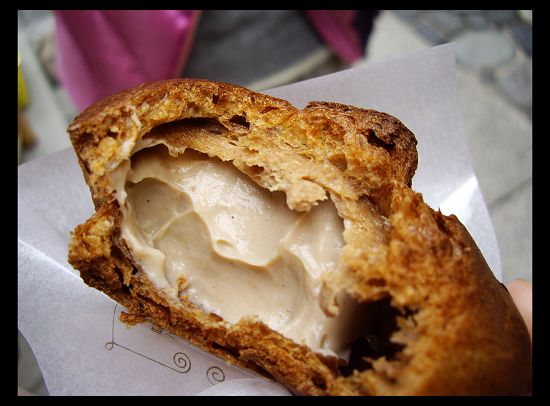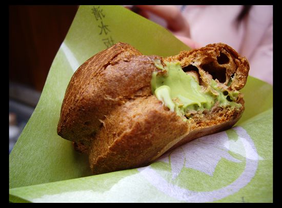 在清水寺附近有一家泡芙店圍滿了人........小豆乾深深覺得看著人家吃的津津有味,自己的嘴巴就會開始癢,唾液開始分泌,不自主的手就會掏出銀兩,等到發現的時候,手上已經捧著好吃的泡芙了!