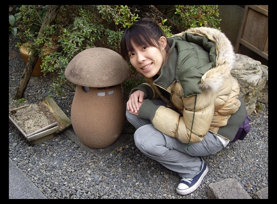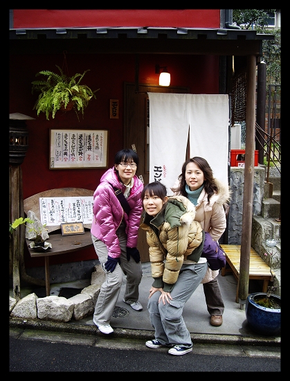 進入本堂參拜必須將鞋子脫掉,在冬天脫鞋子,踩在冰涼的地板上,真的很冷 所以就會看到我們三個人躡手躡腳的東跳西跳,盡量減少腳丫子接觸冰冷地板的機會