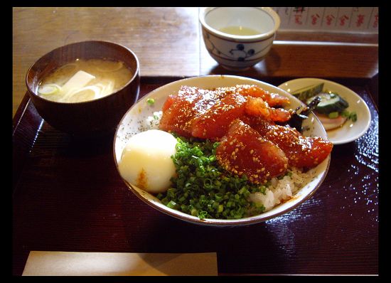 哈哈~~這是小豆乾&莊童鞋點的是鮪魚山藥泥丼~~我只能說:老天!實在太好吃了老闆使用的鮪魚非常新鮮,切塊後以醬料稍微醃漬,配上鮮甜的青蔥,還有半熟的玉子,真是難以忘懷的好味道~~~
