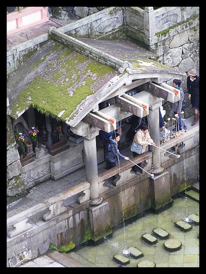 順著階梯而下就可以看到大排長龍的音羽瀑布,泉水分為三支,分別是長壽、健康以及智慧。據說喝了之後,可以預防疾病與災厄!不過在排隊的過程中,會有人插隊......這實在不是很好的現象!