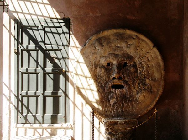 真言之口鑲在門廊的牆上,可能是一塊水溝蓋,建於西元前4世紀。中古世紀的傳說是:可怕的虎牙會把說謊者放進虎口的手給咬斷。通常用來測試情侶或夫妻間的忠誠度。