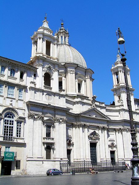 教堂的設計師是有名的波洛米尼(也就是貝尼尼的死對頭)。在正面的教堂上,有尊阿妮絲的雕像,據說是用來向四河噴泉的拉布拉多河雕像保證這間教堂絕不會垮下來。