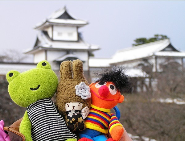 加賀百萬石遺跡~~金澤城城牆兼六園的對面是加賀百萬石前田家族所築的金澤城遺址。金澤城模仿豐臣秀吉的大阪城而造,原有5層的天守閣。壯麗的天守閣在1602年因遭雷擊而焚毀,其後雖然又修造了5層的箭樓,但卻沒有再造天守閣。這是前田一家有意對德川幕府表示沒有戰略上的遠圖,好讓幕府放心。 前田一家傳至第十四代才被撤藩(西元1869年),由於前田家族長久以來對幕府忠心耿耿,坐擁加賀地區百萬石俸祿,也因為此地未被戰火波及,所以才賦予金澤地區特有的精緻特色。